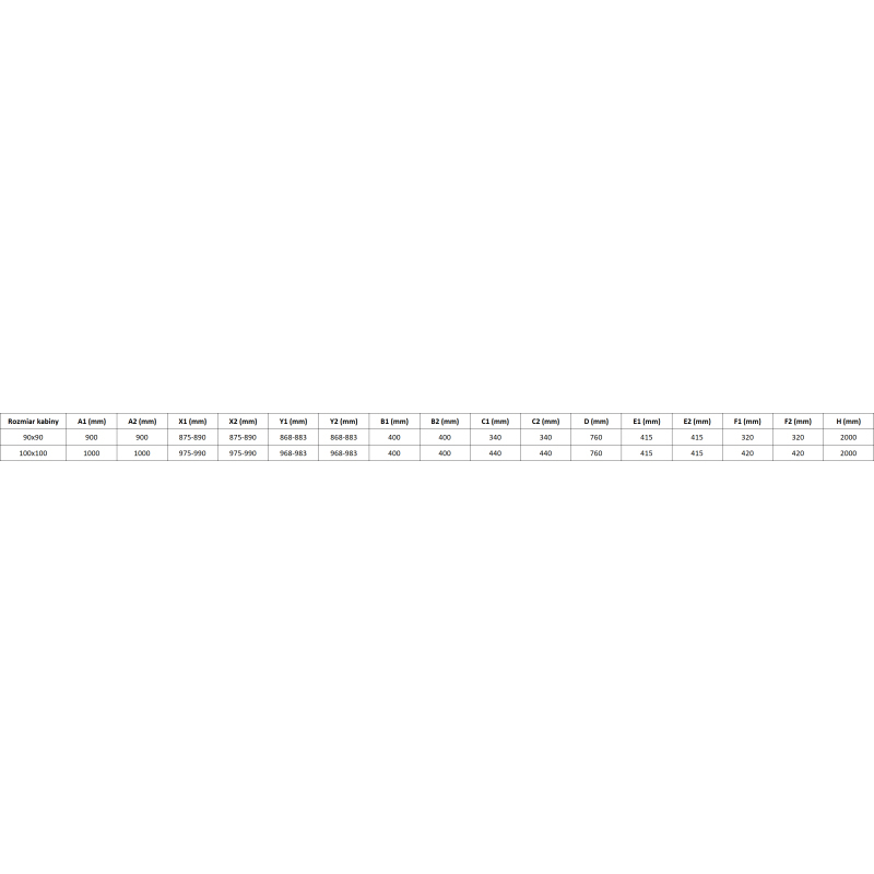 Špecifikácia produktu: Rozmer: 90x90 cm Výška: 200 cm Polomer zakrivenia R55 Strana montáže: Univerzálny Vchod: Dvere s otočnými pántami Farba skla: Priehľadná Povrchová úprava: Chróm Profil: Hliník Uhlový stabilizátor L: Nerezová oceľ Typ skla: Tvrdené Hrúb Nastaviteľná šírka Možnosť inštalácie na sprchovú vaničku alebo dlaždice Mechanizmus na zdvíhanie a spúšťanie dverí Mosadzné pánty v jednej rovine so sklenenou tabuľou Magnetický prúžok a elastomérové tesnenie pre odvod vody Hliníkový prah tesnenia dverí