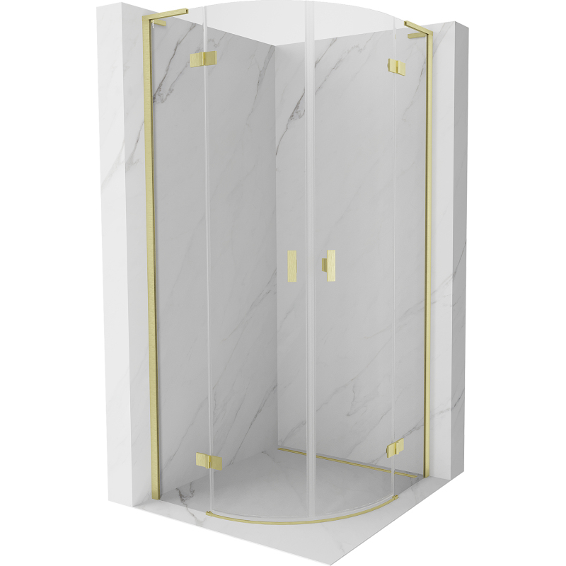 Mexen Mist L polkruhový výklopný sprchovací kút 90 x 90 cm, priehľadný, kartáčované zlato - 8A33L-090-090-55-00