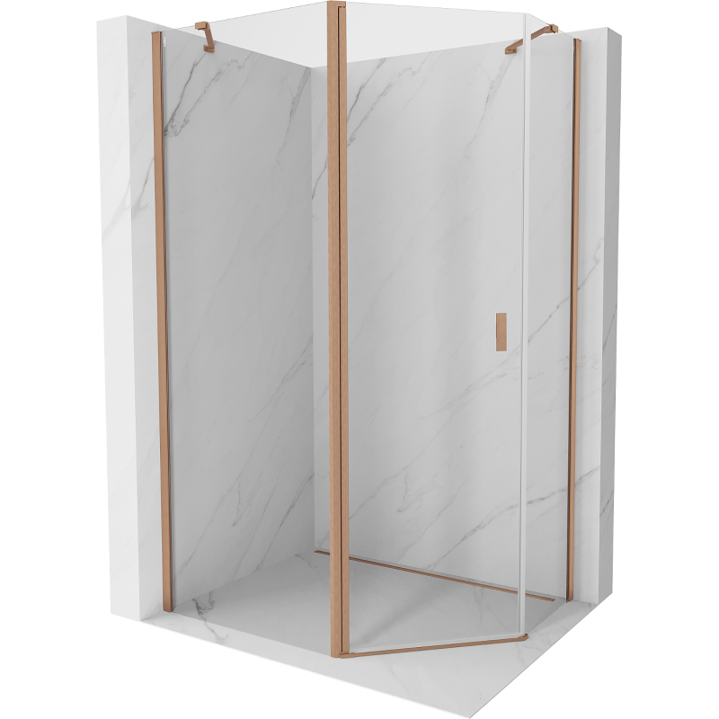 Mexen Mist päťuholníkový asymetrický výklopný sprchovací kút 90 x 80 cm, priehľadný, kartáčovaná meď - 8A8-090-080-65-00