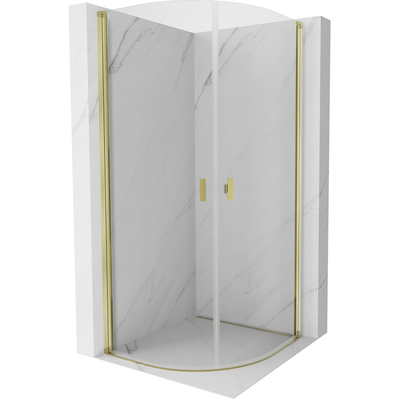 Špecifikácia produktu: Rozmer: 90x90 cm Výška: 200 cm Polomer zakrivenia R55 Strana montáže: Univerzálny Vchod: Dvere s výklopnými krídlami Farba skla: Priehľadná Povrchová úprava: Zlatá Profil: Hliník Typ skla: Tvrdené inštalácia Hrúbka skla: 6 mm sprchovaciu vaničku alebo dlaždice Mechanizmus zdvíhania a spúšťania dverí Magnetický prúžok a elastomérové tesnenie pre odtok vody Hliníkový prah tesnenia dverí