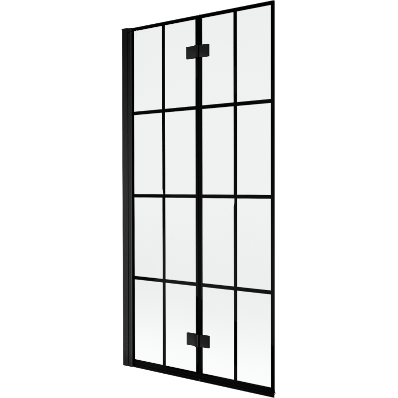 Špecifikácia produktu: Šírka: 90 cm Výška: 150 cm Typ: 2krídlové Strana montáže: Ľavá Typ: Pohyblivé/Skladacie Typ skla: Tvrdené Farba skla: Čierna mriežka Hrúbka skla: 6 mm Povrchová úprava: Čierna Ľahko čistiteľný povlak Nastaviteľná šírka Elastomérové tesnenia na odvod vody