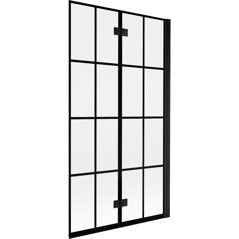 Špecifikácia produktu: Šírka: 100 cm Výška: 150 cm Typ: 2krídlové Strana montáže: Pravá Typ: Posuvné/Skladacie Typ skla: Tvrdené Farba skla: Čierna mriežka Hrúbka skla: 6 mm Povrchová úprava: Čierna Ľahko čistiteľný povlak Nastaviteľná Elastomérové tesnenia na odvod vody