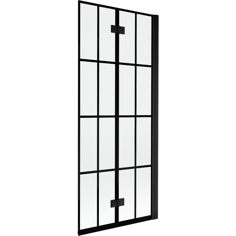 Špecifikácia produktu: Šírka: 80 cm Výška: 150 cm Typ: 2krídlové Strana montáže: Pravá Typ: Posuvné/Skladacie Typ skla: Tvrdené Farba skla: Čierna mriežka Hrúbka skla: 6 mm Povrchová úprava: Čierna Ľahko čistiteľný povlak Nastaviteľná šírka Elastomérové tesnenia na odvod vody
