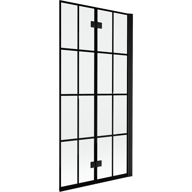 Špecifikácia produktu: Šírka: 90 cm Výška: 150 cm Typ: 2krídlové Strana montáže: Pravá Typ: Posuvné/Skladacie Typ skla: Tvrdené Farba skla: Čierna mriežka Hrúbka skla: 6 mm Povrchová úprava: Čierna Ľahko čistiteľný povlak Nastaviteľná šírka Elastomérové tesnenia na odvod vody