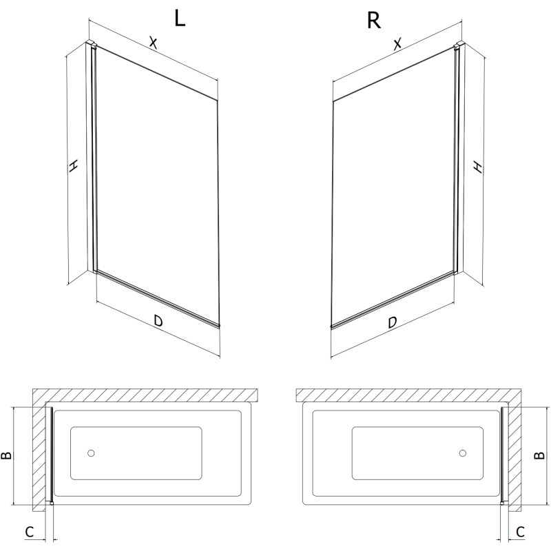 Špecifikácia produktu: Šírka: 50 cm Výška: 150 cm Typ: 1-krídlové Strana montáže: Ľavé Typ: Pohyblivé/Výklopné Typ skla: Tvrdené Farba skla: Čierny rám Hrúbka skla: 6 mm Povrchová úprava: Čierna Povlak pre ľahké čistenie Nastaviteľná šírka Elasto