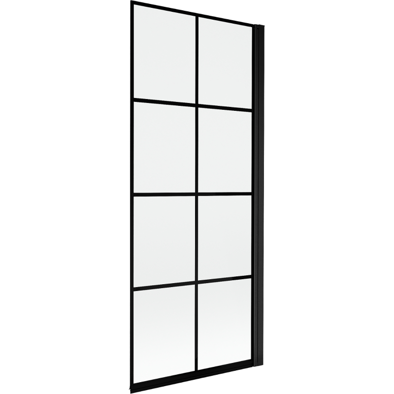 Špecifikácia produktu: Šírka: 80 cm Výška: 150 cm Typ: 1-krídlové Strana montáže: Pravé Typ: Pohyblivé/Výklopné Typ skla: Tvrdené Farba skla: Čierna mriežka Hrúbka skla: 6 mm Povrchová úprava: Čierna Povlak pre ľahké čistenie Nastaviteľná šírka