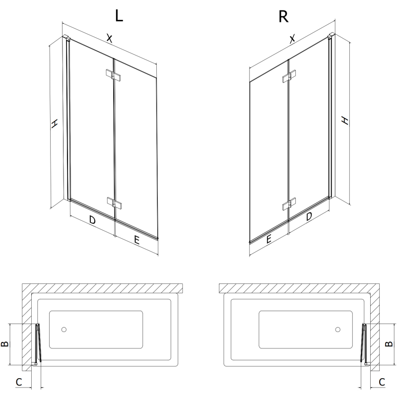 Špecifikácia produktu: Šírka: 120 cm Výška: 150 cm Typ: 2krídlové Strana montáže: Pravá Typ: Posuvné/Skladacie Typ skla: Tvrdené Farba skla: Priehľadná Hrúbka skla: 6 mm Povrchová úprava: Čierna Ľahko čistiteľný povlak Nastaviteľná šírka Mos tesnenie pre odvod vody