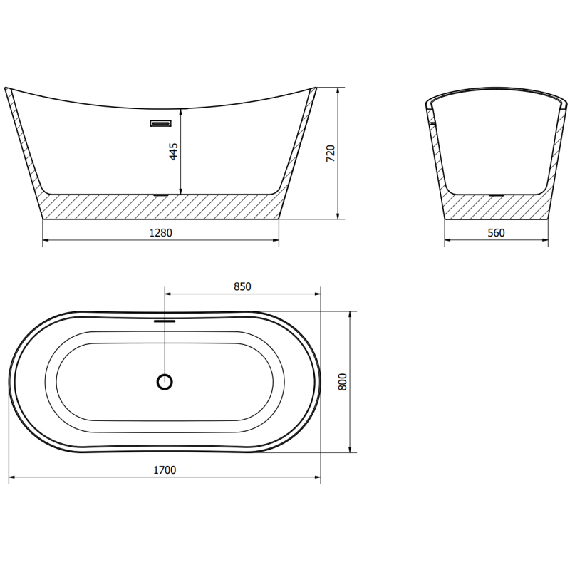 Mexen Montana voľne stojaca vaňa 170 x 80 cm, biela, čierny prepad - 52011708000-70