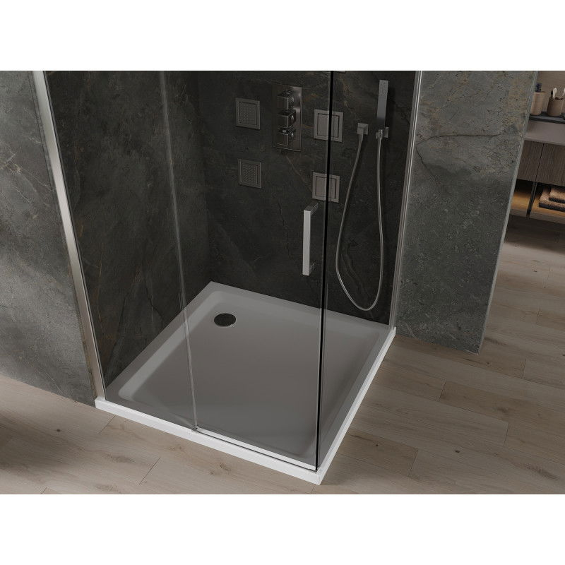 Mexen Omega posuvný sprchový kout 100 x 100 cm, grafit, chrom + plochá sprchová vanička, bílá - 825-100-100-01-40-4010
