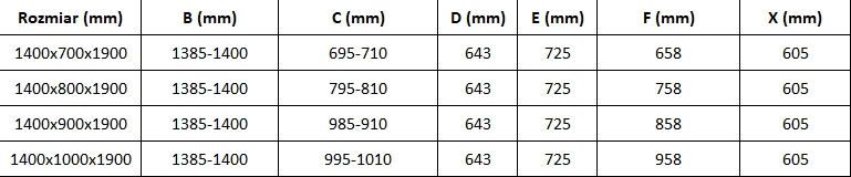 Rozmer: 140x100 cm (dvere 140 cm, stena 100 cm)
