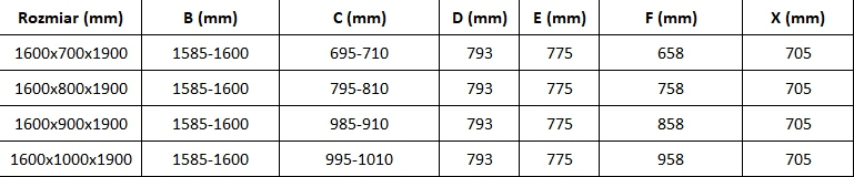 Rozmer: 160x90 cm (dvere 160 cm, stena 90 cm)