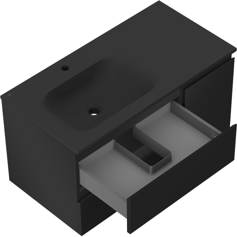 Mexen Orio koupelnová skříňka 90 cm s umyvadlem Vela levým, 2S, 1D, matná černá - 91A13-09047-3-BBFFF71-W23L71