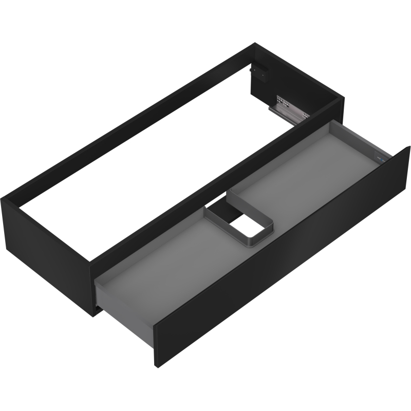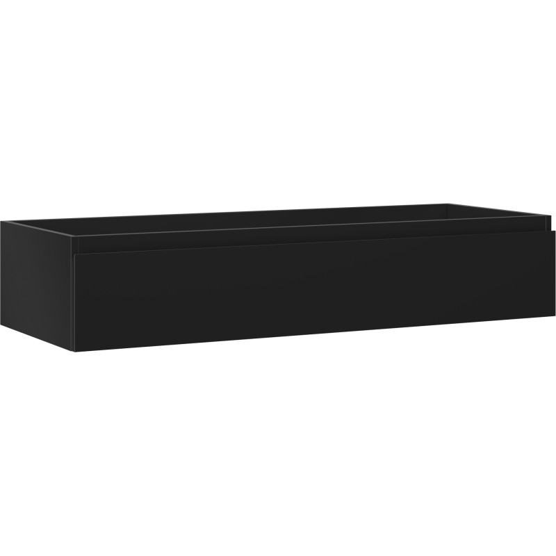 Specifikace produktu: Šířka: 120 cm Výška: 23,5 cm Hloubka: 46 cm Barva korpusu: Matná černá Materiál korpusu: Lakovaná deska Barva čela: Matná černá Materiál čela: Lakovaná MDF deska Struktura čela: Hladká Počet zásuvek: 1 Prostorná zásuvka s funkcí tlumeného dovírání Plný výsuv pro snadný přístup k obsahu zásuvky Povrch odolný vůči UV záření Kombinovatelný s pracovní deskou nebo umyvadlem Otis, Vela Sestavený produkt