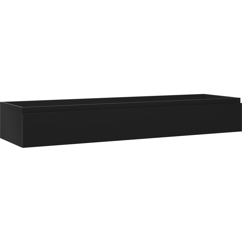Specifikace produktu: Šířka: 160 cm Výška: 23,5 cm Hloubka: 46 cm Barva korpusu: Matná černá Materiál korpusu: Lakovaná deska Barva čela: Matná černá Materiál čela: Lakovaná MDF deska Struktura čela: Hladká Počet zásuvek: 1 Prostorná zásuvka s funkcí tlumeného dovírání Plný výsuv pro snadný přístup k obsahu zásuvky Povrch odolný vůči UV záření Kombinovatelný s pracovní deskou nebo umyvadlem Otis, Vela Sestavený produkt