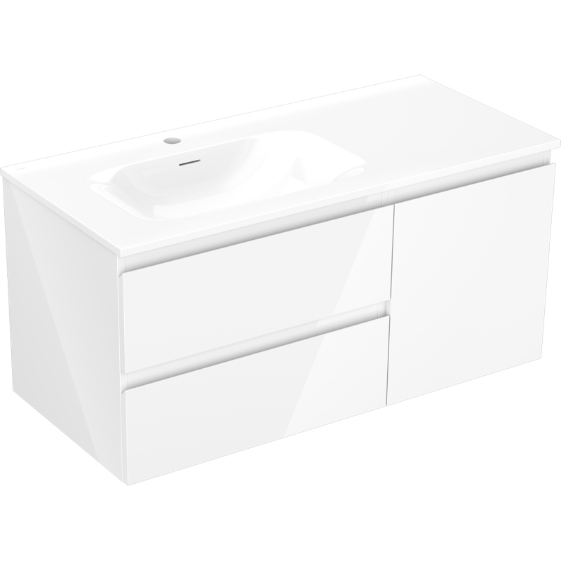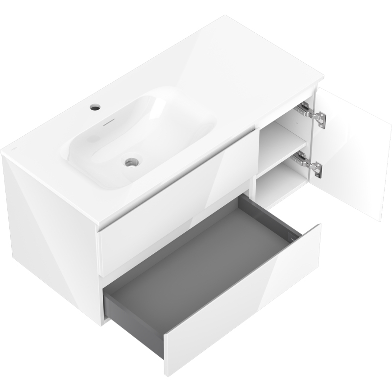 Mexen Orio kúpeľňová skrinka 100 cm s ľavým umývadlom Vela, 2S, 1D, biely lesk - 91A13-10047-3-BBFFF00-W23L00