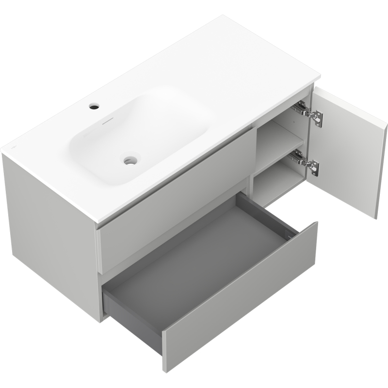 Mexen Orio kúpeľňová skrinka 100 cm s umývadlom Vela ľavým, 2S, 1D, matná šedá/matná biela - 91A13-10047-3-BBFFF62-W23L01