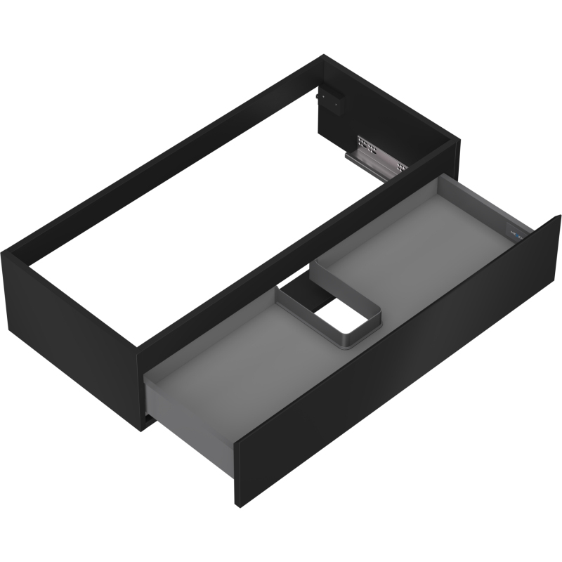 Špecifikácia produktu: Šírka: 100 cm Výška: 23,5 cm Hĺbka: 46 cm Farba korpusu: Matná čierna Materiál korpusu: Lakovaná doska Farba čela: Matná čierna Materiál čela: Lakovaná MDF doska Štruktúra čela: Hladká Počet zásuviek: 1 Priestranná zásuvka s funkciou Povrch odolný voči UV žiareniu Kombinovateľný s pracovnou doskou alebo umývadlom Otis, Vela Zostavený produkt