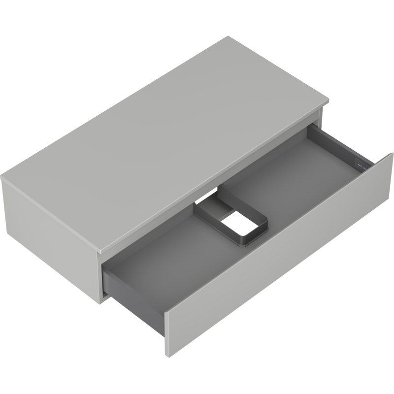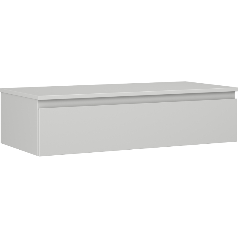 Špecifikácia produktu: Rozmery skrinky: Šírka: 100 cm Výška: 23,5 cm Hĺbka: 46 cm Farba korpusu: Matne šedá Materiál korpusu: Lakovaná doska Farba čela: Matne šedá Materiál čela: Lakovaná MDF doska Štruktúra čela: Hladká Počet zásuviek: 1 výsuv pre ľahký prístup k obsahu zásuvky Povrch odolný voči UV žiareniu Rozmery pracovnej dosky: Šírka: 100,6 cm Hĺbka: 46,5 cm Hrúbka: 1,8 cm Farba pracovnej dosky: Matne šedá Materiál pracovnej dosky: Lakovaná MDF doska Povrch odolný voči UV žiareniu Ideálny ako podstavec