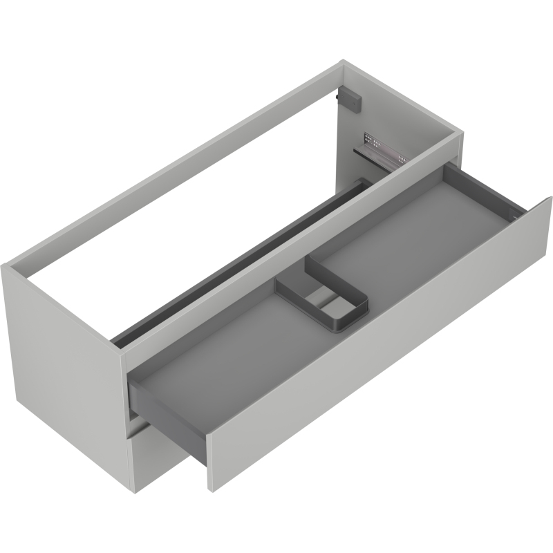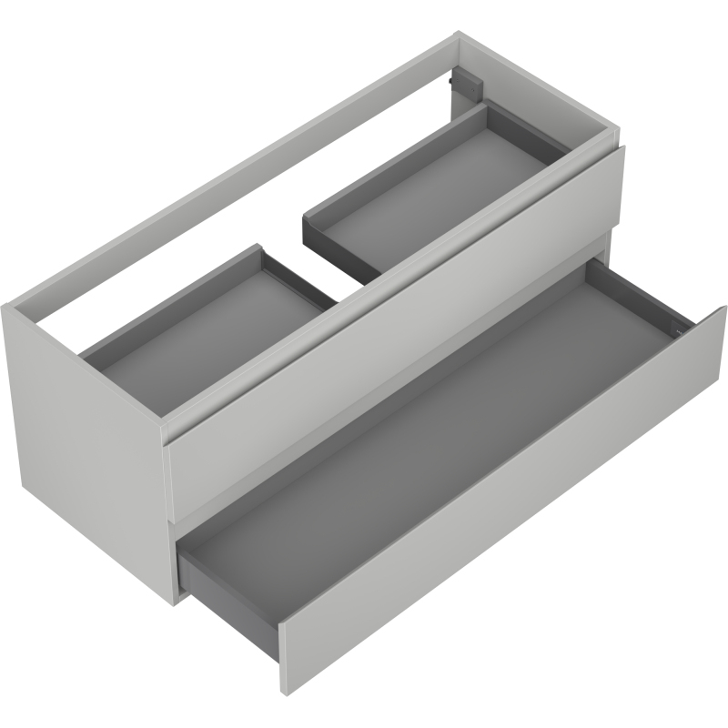 Špecifikácia produktu: Šírka: 120 cm Výška: 47 cm Hĺbka: 46 cm Farba korpusu: Matne šedá Materiál korpusu: Lakovaná doska Farba čela: Matne šedá Materiál čela: Lakovaná MDF doska Štruktúra čela: Hladká Počet zásuviek: 2 Priestranná zásuvka s funkciou tlm Povrch odolný voči UV žiareniu Kombinovateľný s pracovnou doskou alebo umývadlom Otis, Vela Zmontovaný produkt