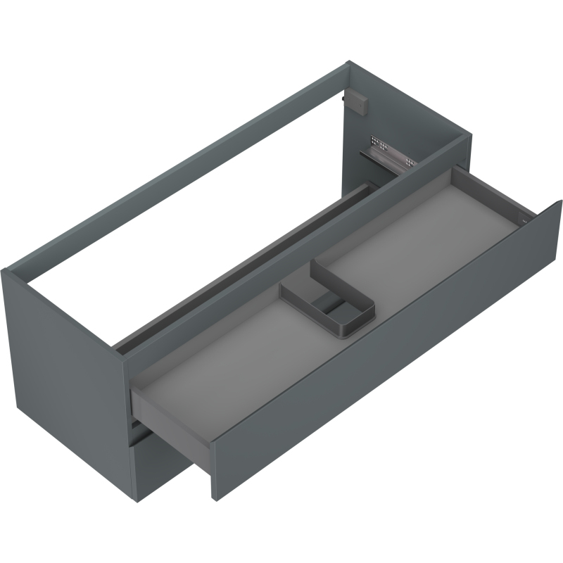 Špecifikácia produktu: Šírka: 120 cm Výška: 47 cm Hĺbka: 46 cm Farba korpusu: Matný grafit Materiál korpusu: Lakovaná doska Farba čela: Matný grafit Materiál čela: Lakovaná MDF doska Štruktúra čela: Hladká Počet zásuviek: 2 Priestranná zásuvka s funkciou zásuvky Povrch odolný voči UV žiareniu Kombinovateľný s pracovnou doskou alebo umývadlom Otis, Vela Zostavený produkt