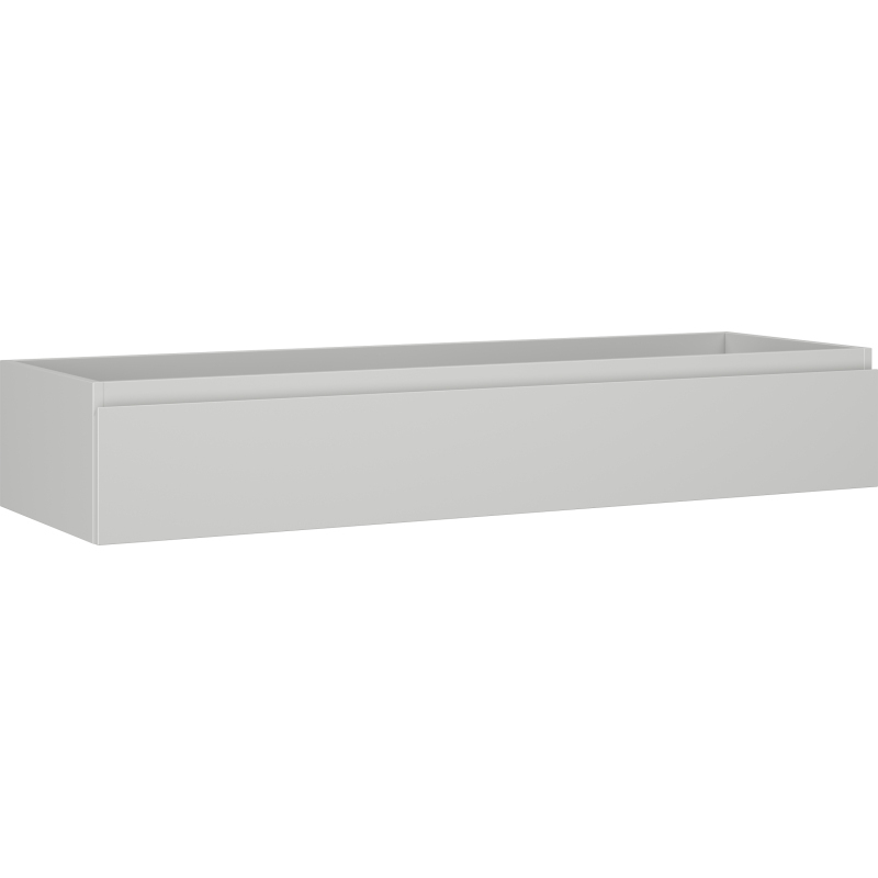 Špecifikácia produktu: Šírka: 140 cm Výška: 23,5 cm Hĺbka: 46 cm Farba korpusu: Matne šedá Materiál korpusu: Lakovaná doska Farba čela: Matne šedá Materiál čela: Lakovaná MDF doska Štruktúra čela: Hladká Počet zásuviek: 1 Priestranná zásuvka s funkciou zásuvky Povrch odolný voči UV žiareniu Kombinovateľný s pracovnou doskou alebo umývadlom Otis, Vela Zmontovaný produkt