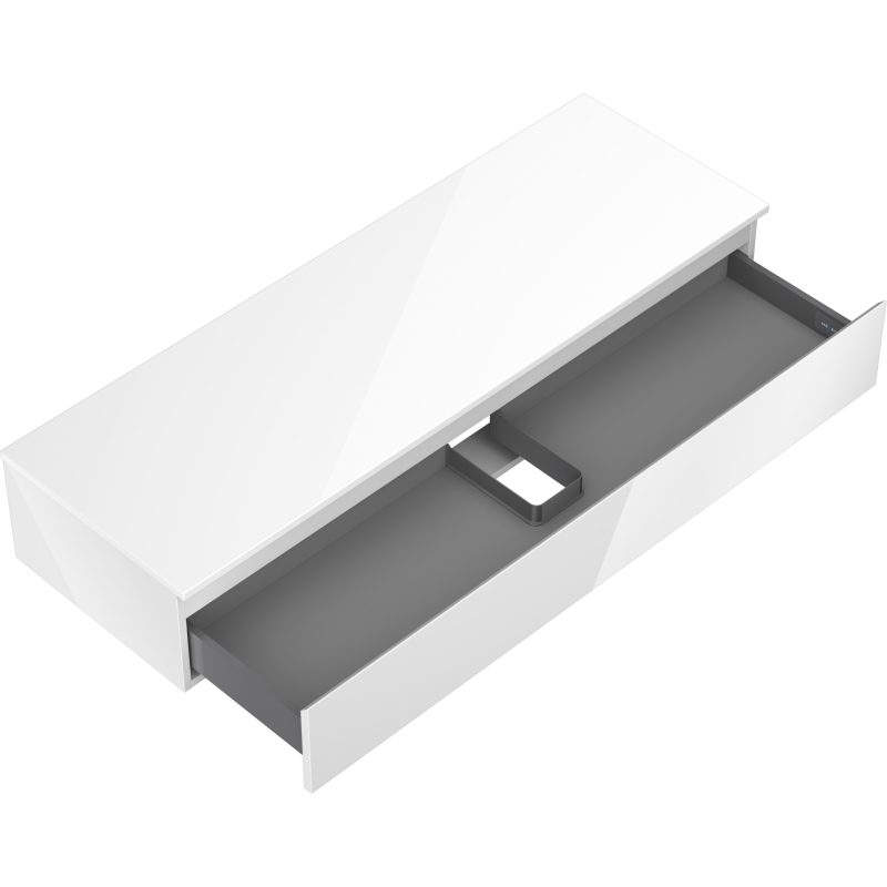 Špecifikácia produktu: Rozmery skrinky: Šírka: 140 cm Výška: 23,5 cm Hĺbka: 46 cm Farba korpusu: Lesklá biela Materiál korpusu: Lakovaná doska Farba čela: Lesklá biela Materiál čela: Lakovaná MDF doska Štruktúra čela: Hladká Počet zásuviek: Plný výsuv pre ľahký prístup k obsahu zásuvky Povrch odolný voči UV žiareniu Rozmery pracovnej dosky: Šírka: 140,6 cm Hĺbka: 46,5 cm Hrúbka: 1,8 cm Farba pracovnej dosky: Lesklá biela Materiál pracovnej dosky: Lakovaná MDF doska Povrch odolný voči UV žiareniu