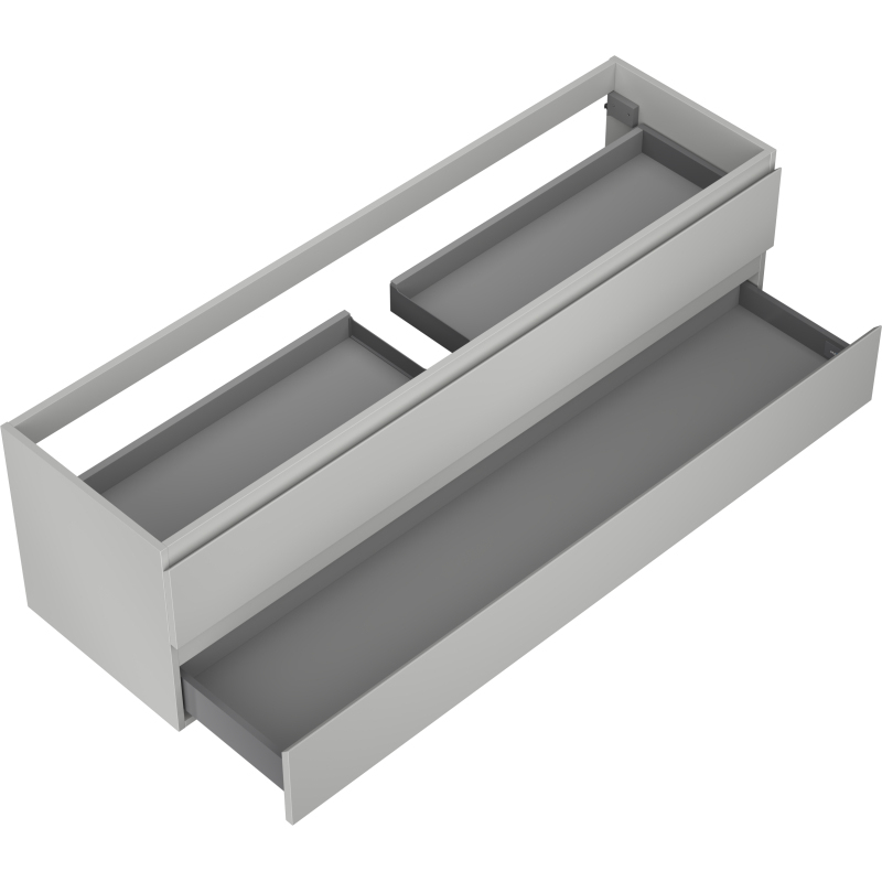 Špecifikácia produktu: Šírka: 160 cm Výška: 47 cm Hĺbka: 46 cm Farba korpusu: Matne šedá Materiál korpusu: Lakovaná doska Farba čela: Matne šedá Materiál čela: Lakovaná MDF doska Štruktúra čela: Hladká Počet zásuviek: 2 Priestranná zásuvka s funkciou tlm Povrch odolný voči UV žiareniu Možno doplniť pracovnou doskou alebo umývadlom Otis, Vela Zmontovaný produkt