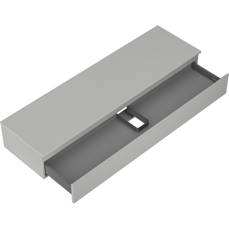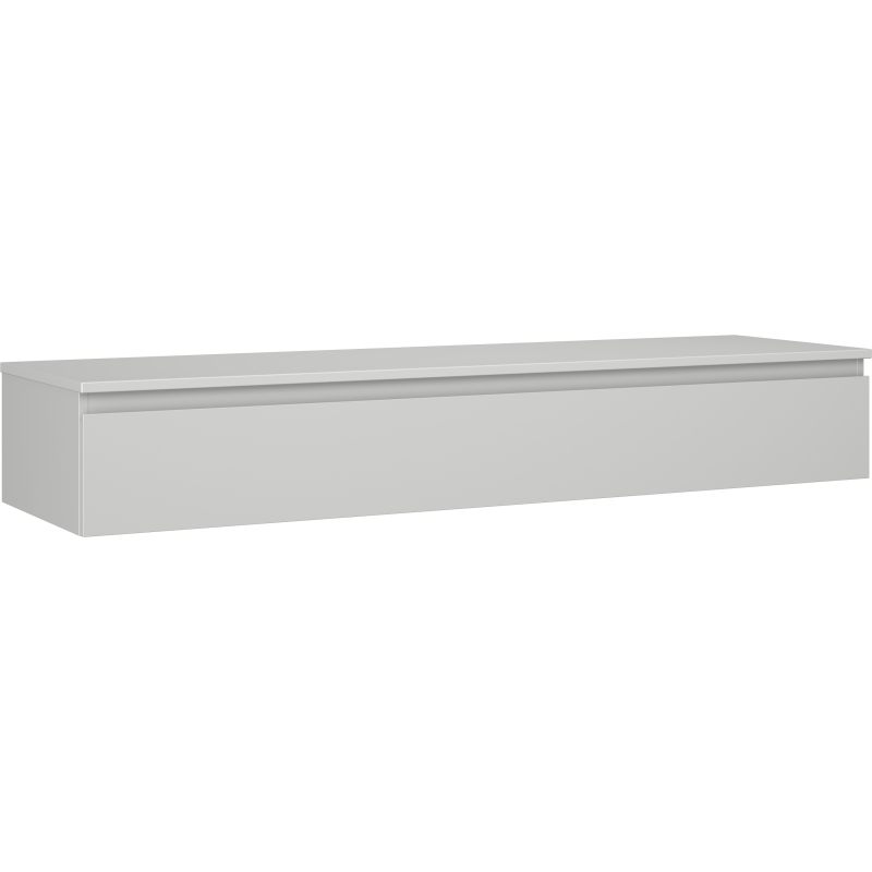 Špecifikácia produktu: Rozmery skrinky: Šírka: 160 cm Výška: 23,5 cm Hĺbka: 46 cm Farba korpusu: Matne šedá Materiál korpusu: Lakovaná doska Farba čela: Matne šedá Materiál čela: Lakovaná MDF doska Štruktúra čela: Hladká Počet zásuviek: 1 výsuv pre ľahký prístup k obsahu zásuvky Povrch odolný voči UV žiareniu Rozmery pracovnej dosky: Šírka: 160,6 cm Hĺbka: 46,5 cm Hrúbka: 1,8 cm Farba pracovnej dosky: Matne šedá Materiál pracovnej dosky: Lakovaná MDF doska Povrch odolný voči UV žiareniu Ideálny ako podstavec