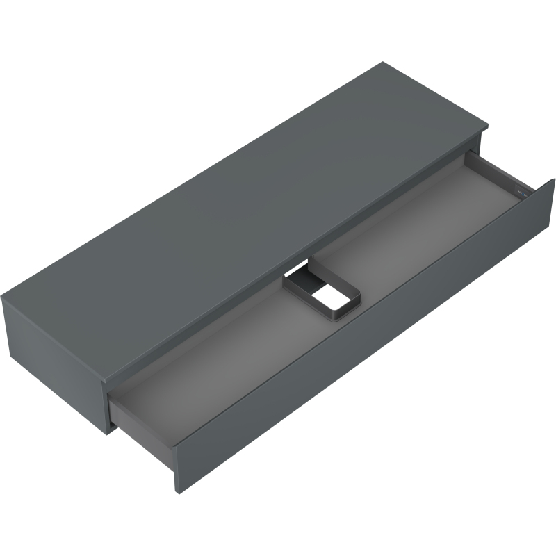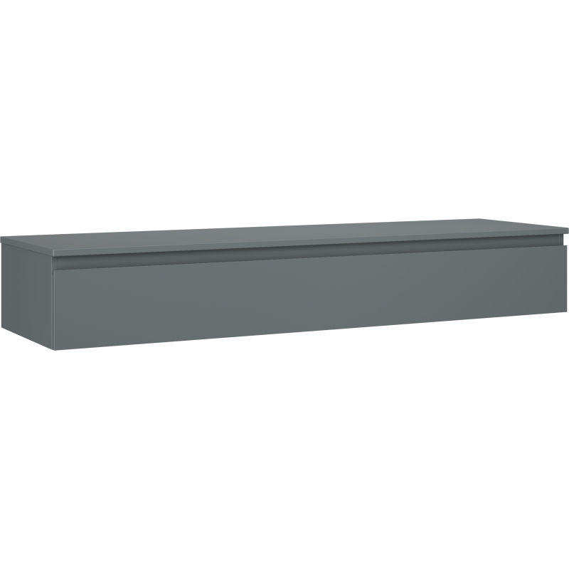 Špecifikácia produktu: Rozmery skrinky: Šírka: 160 cm Výška: 23,5 cm Hĺbka: 46 cm Farba korpusu: Matný grafit Materiál korpusu: Lakovaná doska Farba čela: Matný grafit Materiál čela: Lakovaná MDF doska Štruktúra čela: Hladká Počet zásuviek: Plný výsuv pre ľahký prístup k obsahu zásuvky Povrch odolný voči UV žiareniu Rozmery pracovnej dosky: Šírka: 160,6 cm Hĺbka: 46,5 cm Hrúbka: 1,8 cm Farba pracovnej dosky: Matný grafit Materiál pracovnej dosky: Lakovaná MDF doska Povrch odolný voči UV žiareniu