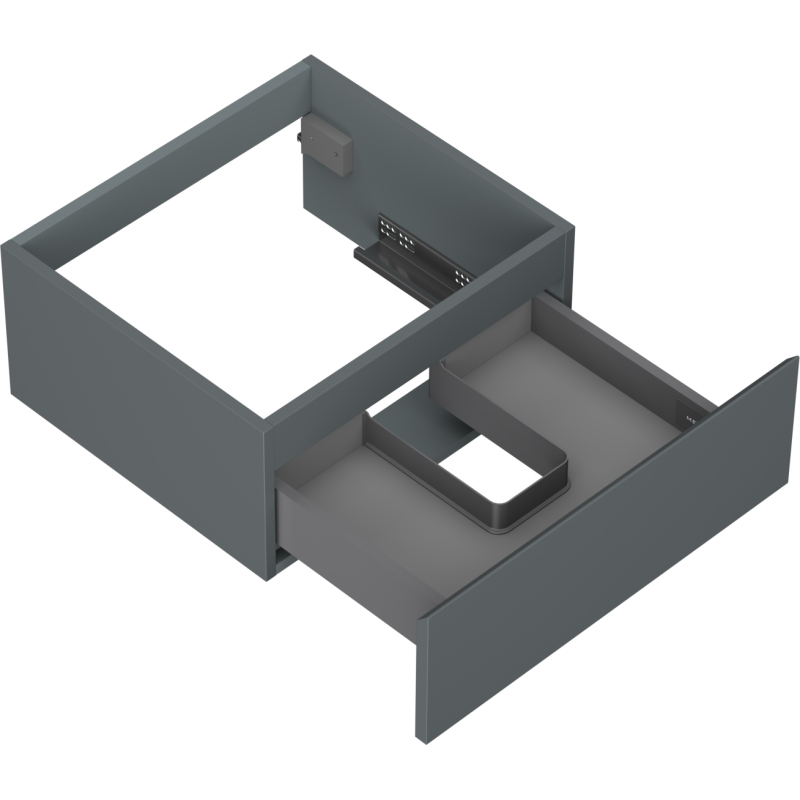 Špecifikácia produktu: Šírka: 50 cm Výška: 23,5 cm Hĺbka: 46 cm Farba korpusu: Matný grafit Materiál korpusu: Lakovaná doska Farba čela: Matný grafit Materiál čela: Lakovaná MDF doska Štruktúra čela: Hladká Počet zásuviek: 1 Priestranná zásuvka s funkciou obsahu zásuvky Povrch odolný voči UV žiareniu Kombinovateľný s pracovnou doskou alebo umývadlom Otis, Vela Zostavený produkt