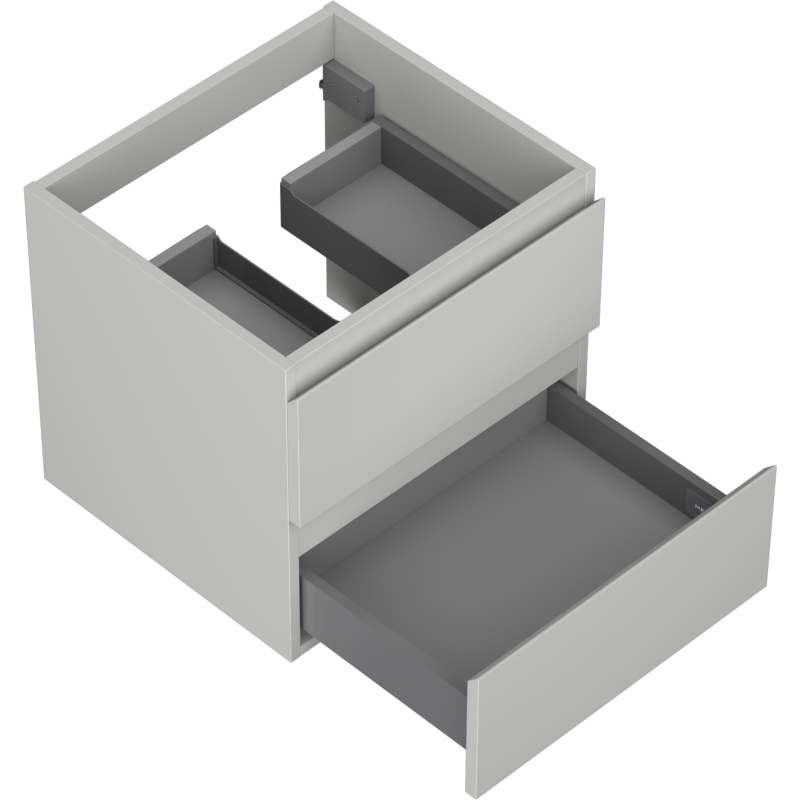 Špecifikácia produktu: Šírka: 50 cm Výška: 47 cm Hĺbka: 46 cm Farba korpusu: Matne šedá Materiál korpusu: Lakovaná doska Farba čela: Matne šedá Materiál čela: Lakovaná MDF doska Štruktúra čela: Hladká Počet zásuviek: 2 Priestranná zásuvka s funkciou tlmný Povrch odolný voči UV žiareniu Možno doplniť pracovnou doskou alebo umývadlom Otis, Vela Zmontovaný produkt