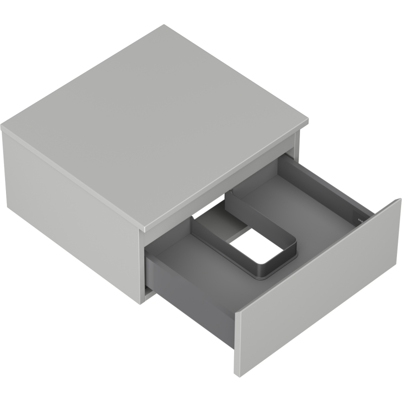 Špecifikácia produktu: Rozmery skrinky: Šírka: 50 cm Výška: 23,5 cm Hĺbka: 46 cm Farba korpusu: Matne šedá Materiál korpusu: Lakovaná doska Farba čela: Matne šedá Materiál čela: Lakovaná MDF doska Štruktúra čela: Hladká Počet zásuviek: 1 výsuv pre ľahký prístup k obsahu zásuvky Povrch odolný voči UV žiareniu Rozmery pracovnej dosky: Šírka: 50,6 cm Hĺbka: 46,5 cm Hrúbka: 1,8 cm Farba pracovnej dosky: Matne šedá Materiál pracovnej dosky: Lakovaná MDF doska Povrch odolný voči UV žiareniu Ideálny ako podstavec