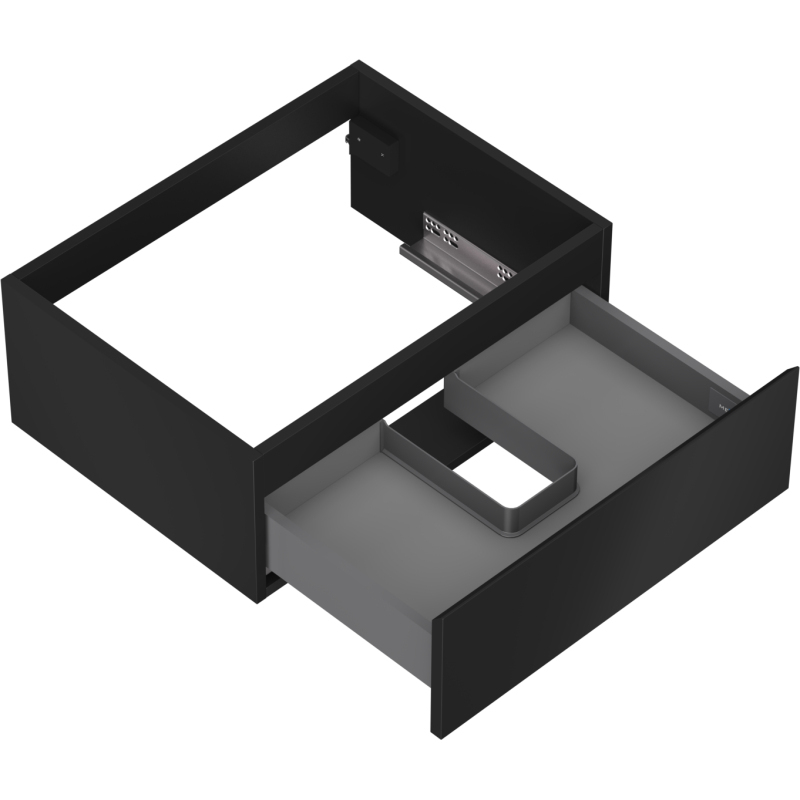 Špecifikácia produktu: Šírka: 60 cm Výška: 23,5 cm Hĺbka: 46 cm Farba korpusu: Matná čierna Materiál korpusu: Lakovaná doska Farba čela: Matná čierna Materiál čela: Lakovaná MDF doska Štruktúra čela: Hladká Počet zásuviek: 1 Priestranná zásuvka s funkciou tlmný Povrch odolný voči UV žiareniu Kombinovateľný s pracovnou doskou alebo umývadlom Otis, Vela Zostavený produkt