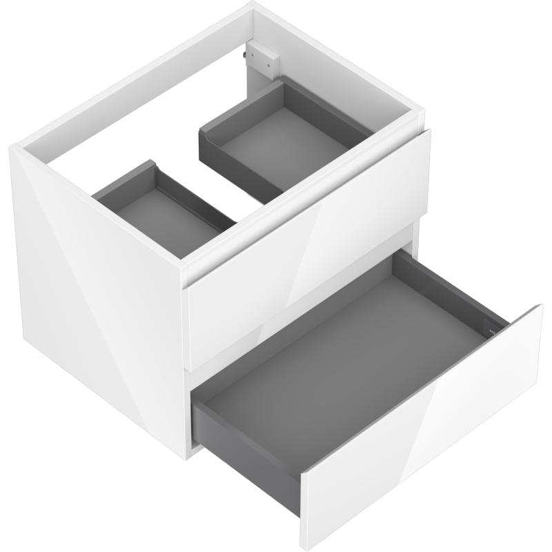 Špecifikácia produktu: Šírka: 60 cm Výška: 47 cm Hĺbka: 46 cm Farba korpusu: Lesklá biela Materiál korpusu: Lakovaná doska Farba čela: Lesklá biela Materiál čela: Lakovaná MDF doska Štruktúra čela: Hladká Počet zásuviek: 2 Priestranná zásuvka zásuvky Povrch odolný voči UV žiareniu Kombinovateľný s pracovnou doskou alebo umývadlom Otis, Vela Zmontovaný produkt