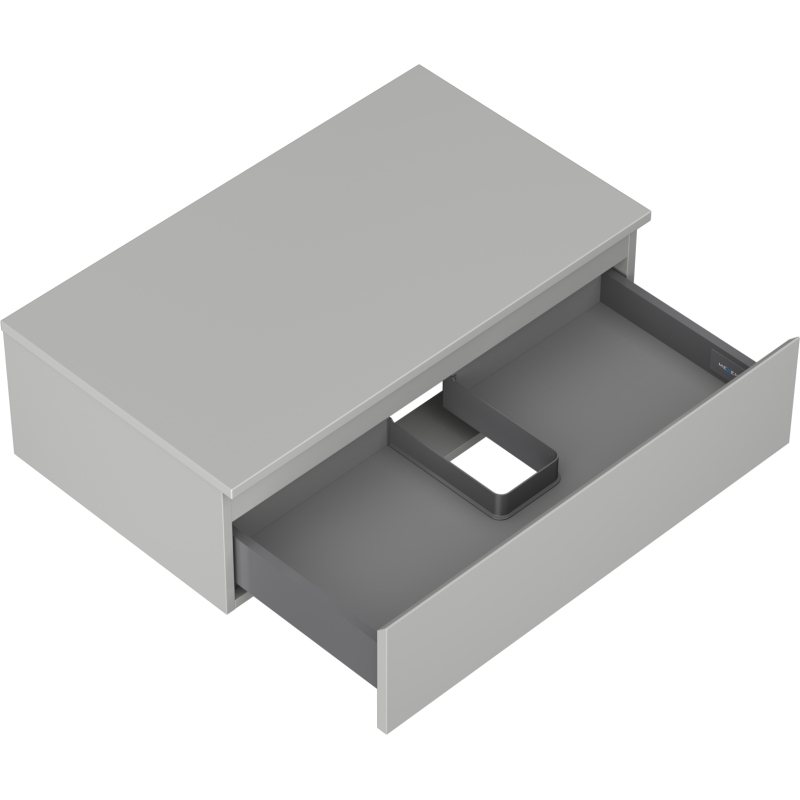 Špecifikácia produktu: Rozmery skrinky: Šírka: 80 cm Výška: 23,5 cm Hĺbka: 46 cm Farba korpusu: Matne šedá Materiál korpusu: Lakovaná doska Farba čela: Matne šedá Materiál čela: Lakovaná MDF doska Štruktúra čela: Hladká Počet zásuviek: 1 výsuv pre ľahký prístup k obsahu zásuvky Povrch odolný voči UV žiareniu Rozmery pracovnej dosky: Šírka: 80,6 cm Hĺbka: 46,5 cm Hrúbka: 1,8 cm Farba pracovnej dosky: Matne šedá Materiál pracovnej dosky: Lakovaná MDF doska Povrch odolný voči UV žiareniu Ideálny ako podstavec