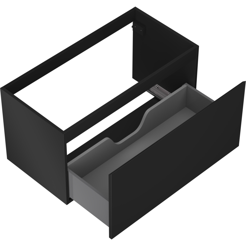 Špecifikácia produktu: Šírka: 90 cm Výška: 47 cm Hĺbka: 46 cm Farba korpusu: Matná čierna Materiál korpusu: Lakovaná doska Farba čela: Matná čierna Materiál čela: Lakovaná MDF doska Štruktúra čela: Hladká Počet zásuviek: 1 Priestranná zásuvka s funkciou tlmeného dovie odolný voči UV žiareniu Kombinovateľný s pracovnou doskou alebo umývadlom Otis, Vela Zmontovaný produkt