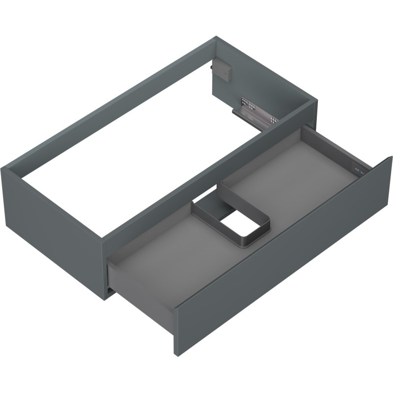 Špecifikácia produktu: Šírka: 90 cm Výška: 23,5 cm Hĺbka: 46 cm Farba korpusu: Matný grafit Materiál korpusu: Lakovaná doska Farba čela: Matný grafit Materiál čela: Lakovaná MDF doska Štruktúra čela: Hladká Počet zásuviek: 1 Priestranná zásuvka s funkciou obsahu zásuvky Povrch odolný voči UV žiareniu Kombinovateľný s pracovnou doskou alebo umývadlom Otis, Vela Zostavený produkt