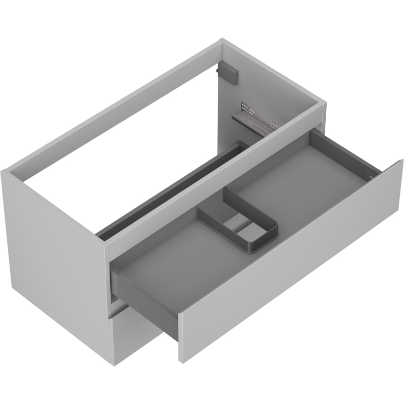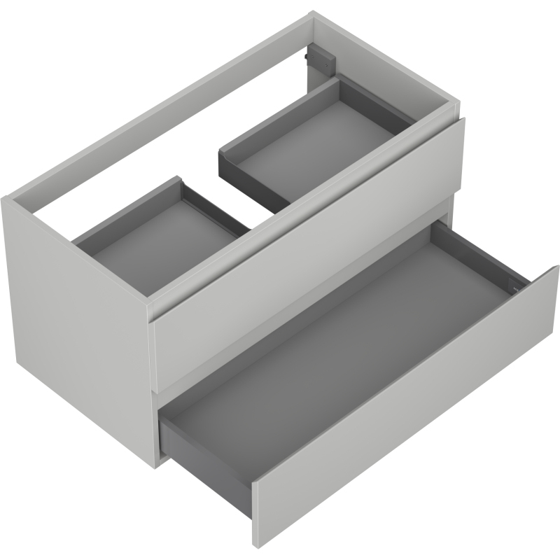 Špecifikácia produktu: Šírka: 90 cm Výška: 47 cm Hĺbka: 46 cm Farba korpusu: Matne šedá Materiál korpusu: Lakovaná doska Farba čela: Matne šedá Materiál čela: Lakovaná MDF doska Štruktúra čela: Hladká Počet zásuviek: 2 Priestranná zásuvka s funkciou tlmný Povrch odolný voči UV žiareniu Kombinovateľný s pracovnou doskou alebo umývadlom Otis, Vela Zmontovaný produkt