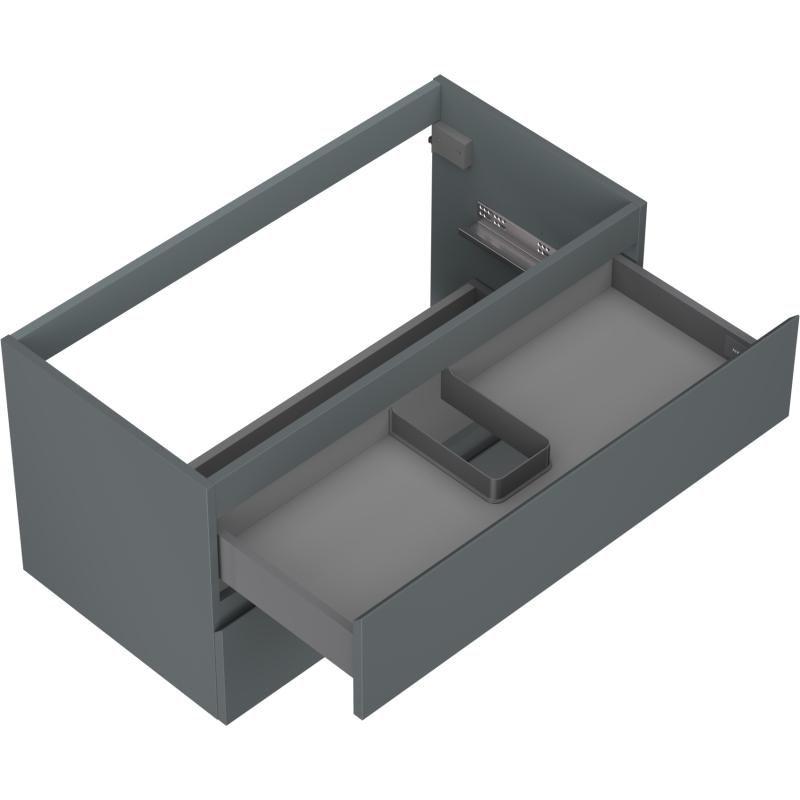 Špecifikácia produktu: Šírka: 90 cm Výška: 47 cm Hĺbka: 46 cm Farba korpusu: Matný grafit Materiál korpusu: Lakovaná doska Farba čela: Matný grafit Materiál čela: Lakovaná MDF doska Štruktúra čela: Hladká Počet zásuviek: 2 Priestranná zásuvka s funkciou zásuvky Povrch odolný voči UV žiareniu Kombinovateľný s pracovnou doskou alebo umývadlom Otis, Vela Zmontovaný produkt