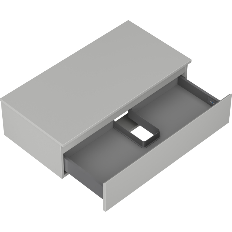 Špecifikácia produktu: Rozmery skrinky: Šírka: 90 cm Výška: 23,5 cm Hĺbka: 46 cm Farba korpusu: Matne šedá Materiál korpusu: Lakovaná doska Farba čela: Matne šedá Materiál čela: Lakovaná MDF doska Štruktúra čela: Hladká Počet zásuviek: 1 výsuv pre ľahký prístup k obsahu zásuvky Povrch odolný voči UV žiareniu Rozmery pracovnej dosky: Šírka: 90,6 cm Hĺbka: 46,5 cm Hrúbka: 1,8 cm Farba pracovnej dosky: Matne šedá Materiál pracovnej dosky: Lakovaná MDF doska Povrch odolný voči UV žiareniu Ideálny ako podstavec