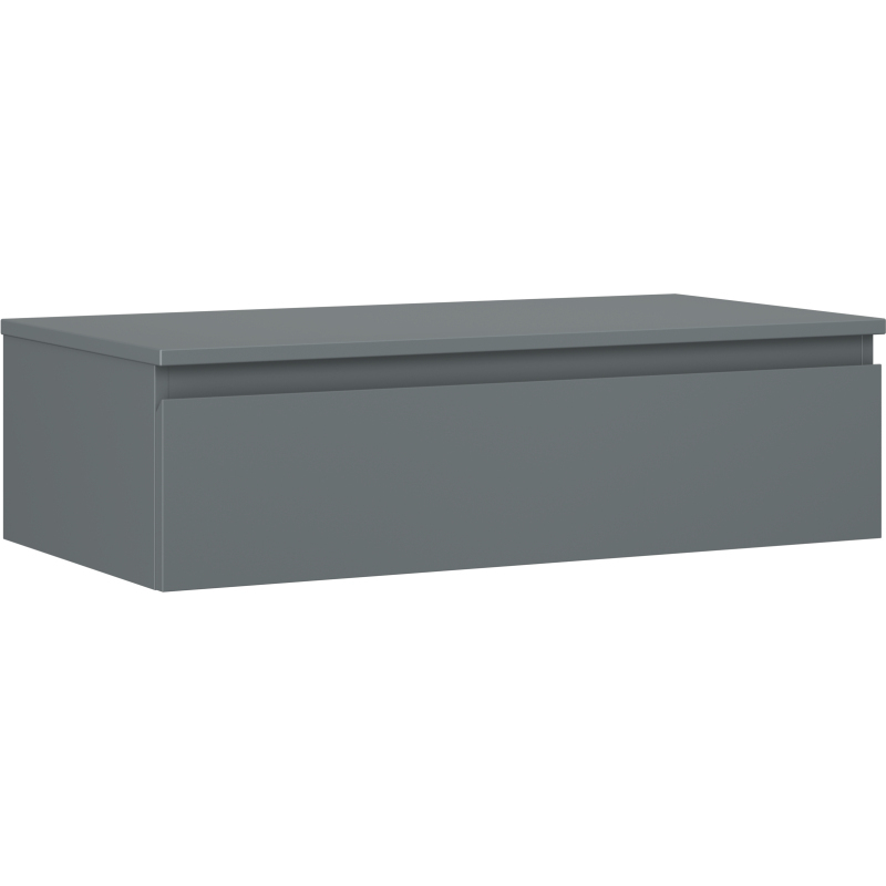Špecifikácia produktu: Rozmery skrinky: Šírka: 90 cm Výška: 23,5 cm Hĺbka: 46 cm Farba korpusu: Matný grafit Materiál korpusu: Lakovaná doska Farba čela: Matný grafit Materiál čela: Lakovaná MDF doska Štruktúra čela: Hladká Počet zásuviek: výsuv pre ľahký prístup k obsahu zásuvky Povrch odolný voči UV žiareniu Rozmery pracovnej dosky: Šírka: 90,6 cm Hĺbka: 46,5 cm Hrúbka: 1,8 cm Farba pracovnej dosky: Matný grafit Materiál pracovnej dosky: Lakovaná MDF doska Povrch odolný voči UV žiareniu Ideálny ako podstavec