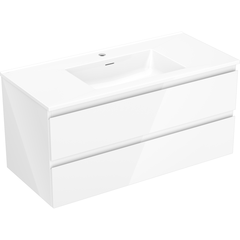 Specyfikacja produktu: Wymiary szafki: Szerokość: 100 cm Głębokość: 46 cm Wysokość: 47 cm Kolor korpus: Biały połysk Materiał korpus: Płyta lakierowana Kolor frontov: Biały połysk Materiał front: Gładka Ilość szuflad: 2 Przestronna szuflada z funkcją cichego domyku Powierzchnia odporná na premieenie UV Wymiary umywalki: Szerokość: 101 cm Głębokość: 46,5 cm Materiał umywalki: Konglomerat Otwór przelewowy: Tak Otwór na batérie: Tak Produkt zmontowany