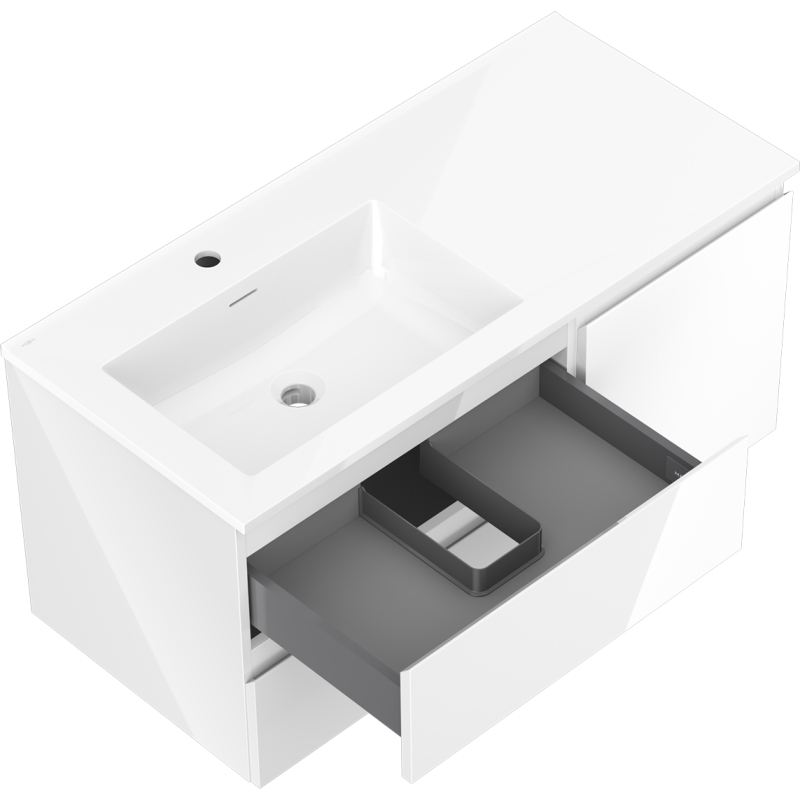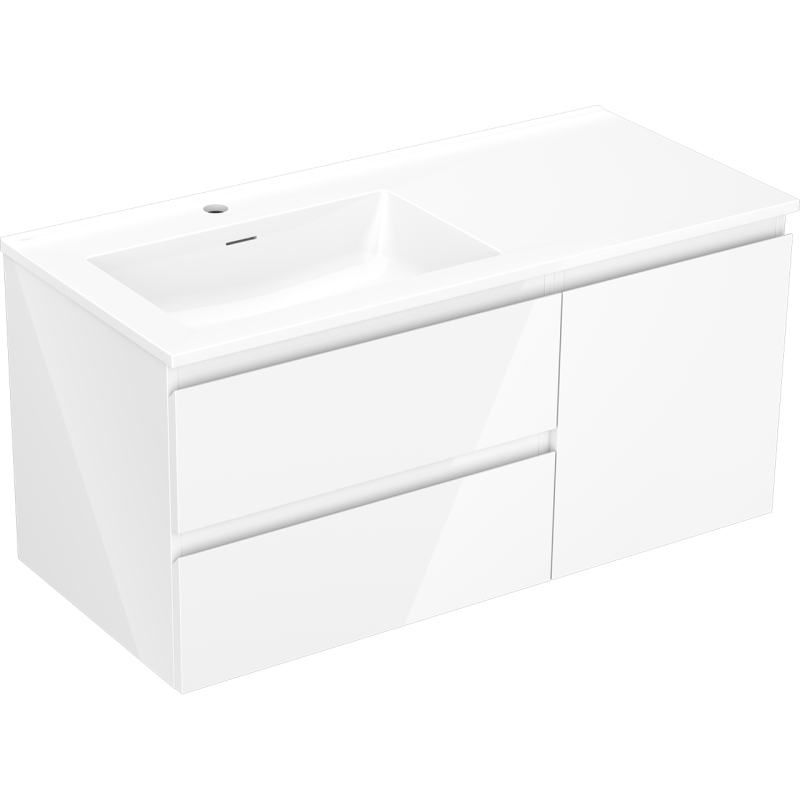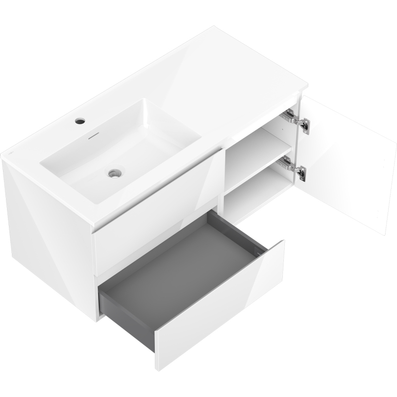 Mexen Orio szafka łazienkowa 100 cm z umywalką Otis lewą, 2S, 1D, biała połysk - 91A13-10047-3-BBFFF00-W18L00
