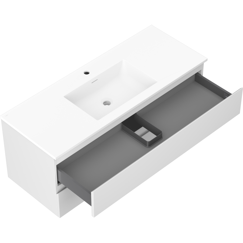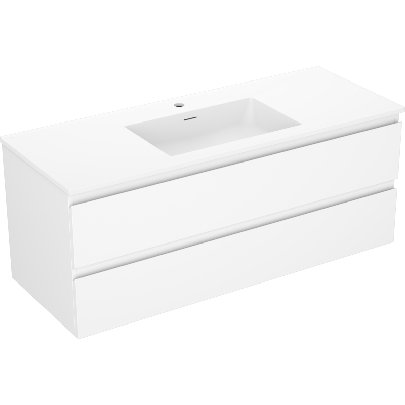Specyfikacja produktu: Wymiary szafki: Szerokość: 120 cm Głębokość: 46 cm Wysokość: 47 cm Kolor korpus: Biały mat Materiał korpus: Płyta lakierowana Kolor front: Biały mat Materiał front: Płyta MDF Ilość szuflad: 2 Przestronna szuflada z funkcją cichego domyku Powierzchnia odporná na premienie UV Wymiary umywalki: Szerokość: 121 cm Głębokość: 46,5 cm Wysokość: 16,5 cm umywalki: Konglomerat Otwór przelewowy: Tak Otwór na batérie: Tak Produkt zmontowany