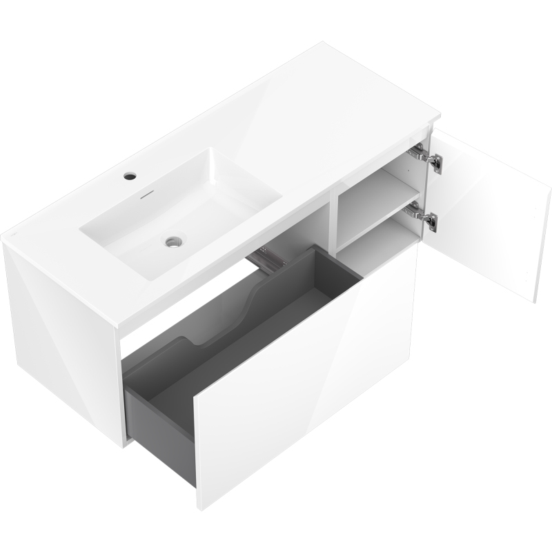 Mexen Orio szafka łazienkowa 120 cm z umywalką Otis lewą, 1S, 1D, biała połysk - 91A13-12047-3-BBFF00-W18L00