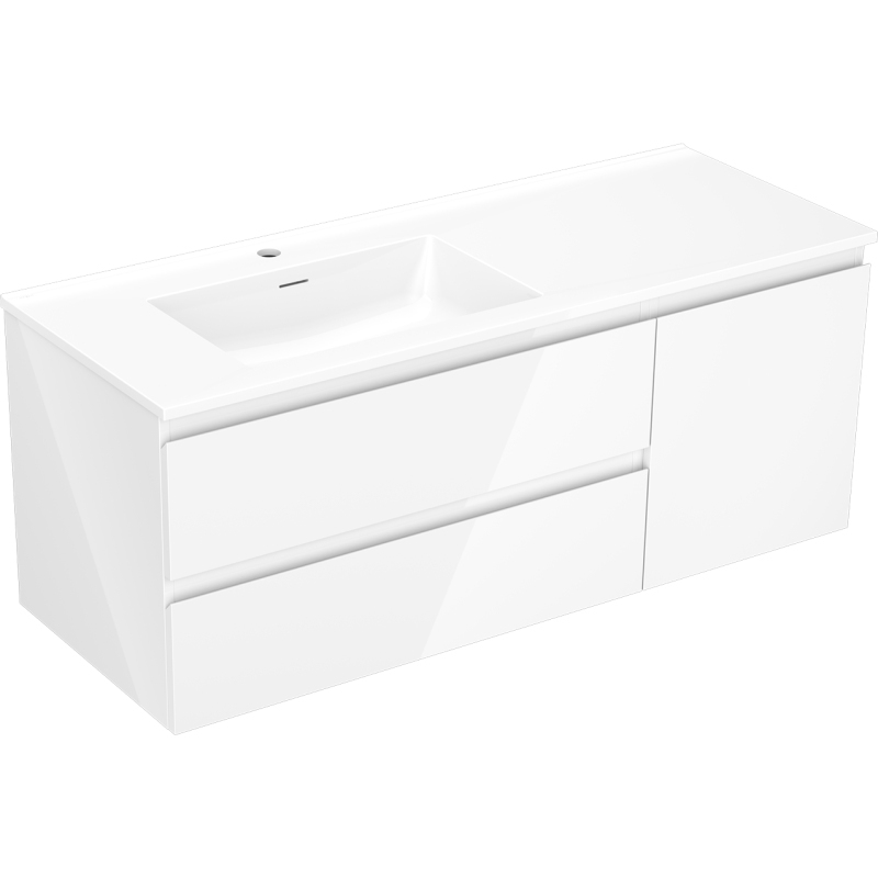 Mexen Orio szafka łazienkowa 120 cm z umywalką Otis lewą, 2S, 1D, biała połysk - 91A13-12047-3-BBFFF00-W18L00