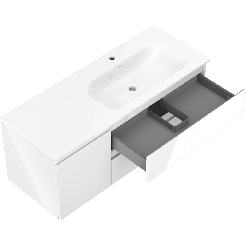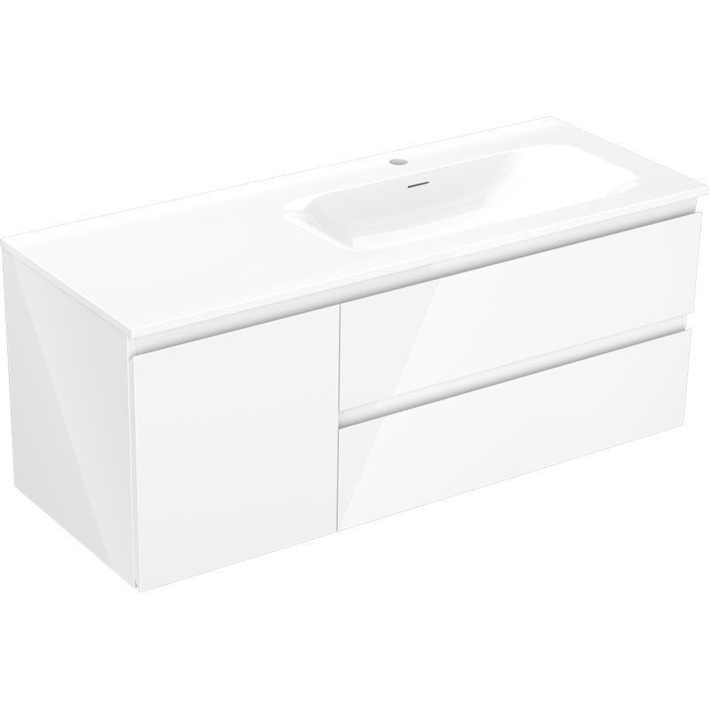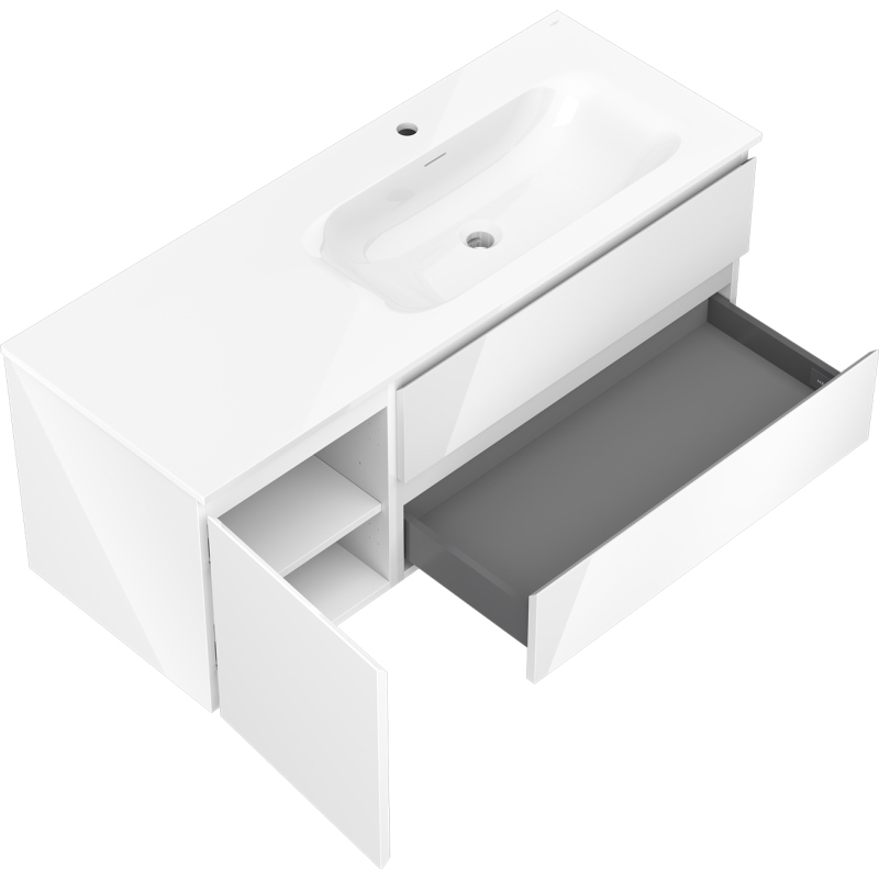 Mexen Orio szafka łazienkowa 120 cm z umywalką Vela prawą, 2S, 1D, biała połysk - 91A13-12047-3-BBFFF00-W23P00