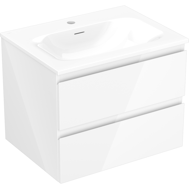 Specyfikacja produktu: Wymiary szafki: Szerokość: 60 cm Głębokość: 46 cm Wysokość: 47 cm Kolor korpus: Biały połysk Materiał korpus: Płyta lakierowana Kolor prednej: Biały połysk Materiał front: Gładka Ilość szuflad: 2 Przestronna szuflada z funkcją cichego domyku Powierzchnia odporná na premienie UV Materiał umywalki: Konglomerat Otwór przelewowy: Tak Otwór na batérie: Tak Produkt zmontowany