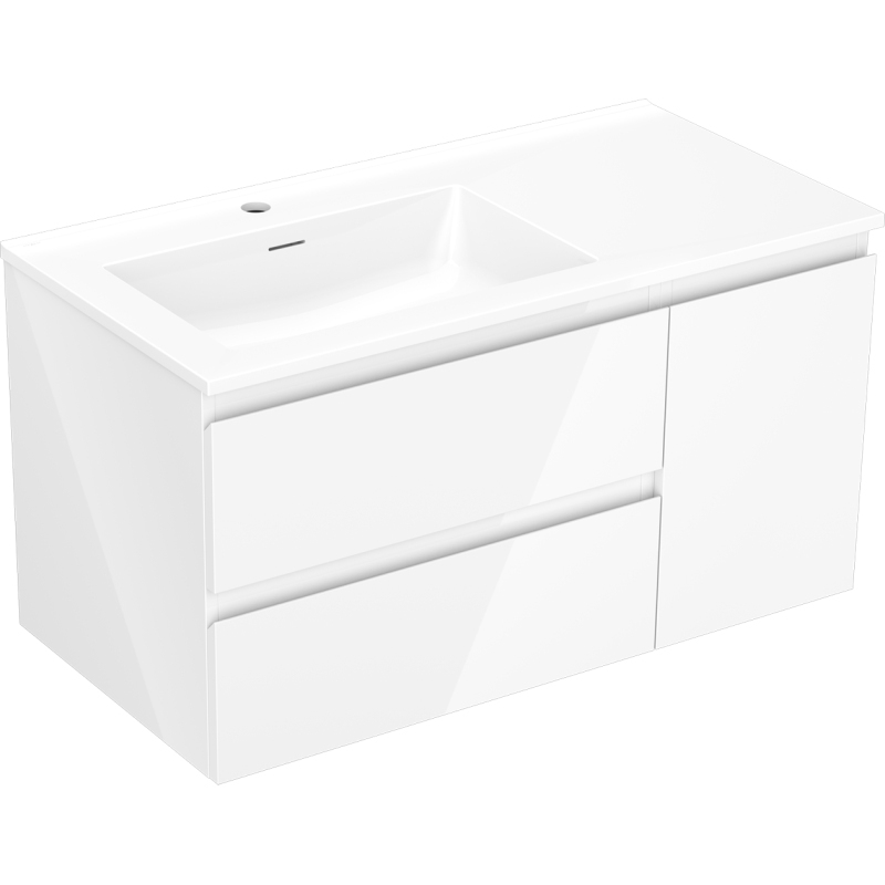Mexen Orio szafka łazienkowa 90 cm z umywalką Otis lewą, 2S, 1D, biała połysk - 91A13-09047-3-BBFFF00-W18L00