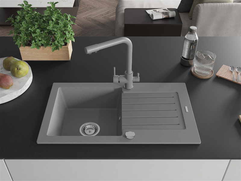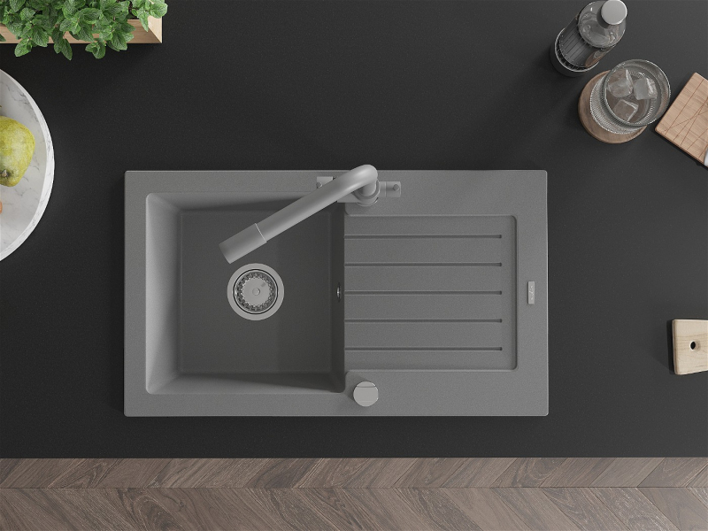 Mexen Pablo 1miskový granitový drez s odkvapkávačom a kuchynskou batériou Duero, sivá - 6510-71-671600-71